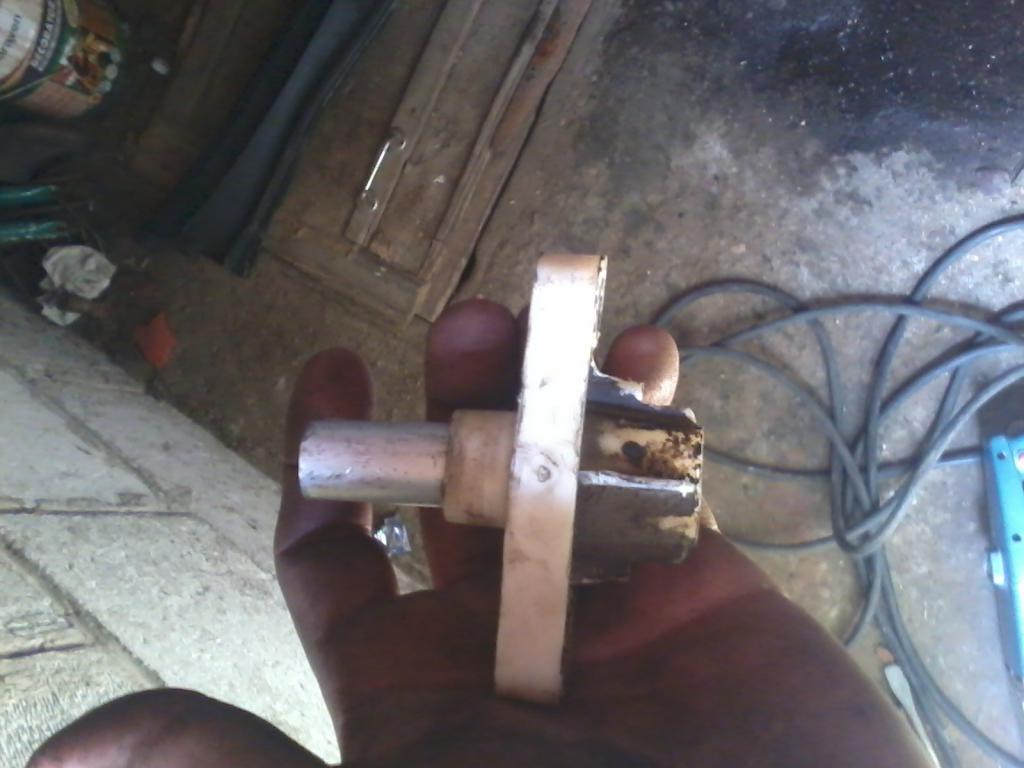 Для восстановления шарнира нужно рассверлить его отверстие и засунуть туда две бронзовые втулки из ремкомплекта стартера ВАЗ-210Х. Так как выработка была в форме эллипса, без станка ровно просверлить оочень сложно.
