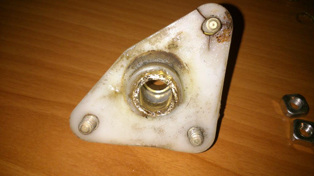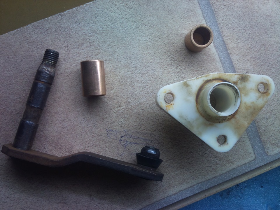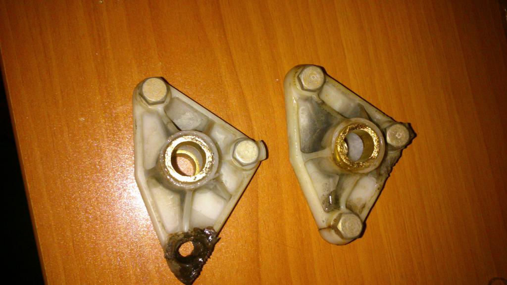 Буквально только что закончил свой ремонт (точнее замену) этих пластиковых горе-кронштейнов. У меня вообще при откручивании гаек на них не только отломались болты, но и сами пластиковые кронштейны рассыпались на несколько кусков (может потому что снимал в мороз). Поэтому пришлось изготавливать, т.к ценники стали конские - около 5000р. за пару. По образу и подобию вырезал из 3мм листа нержавейки эти два треугольника, а в центр вварил по отрезку нержавеющей трубки (25мм внешний диам.). Выточил из капролоктана втулки с высверленным внутренним 12мм диам. (под оси дворников), внешний уже не помню, особо не старался соблюдать точность, грубо и примерно на точиле под внутренний диам.трубок. главное вдавить их в трубку. запрессовал в нержавку. Потом приварил по 3 крепёжных болта. Смазал всё хорошенечко и собрал. Теперь практически навечно. Всё-таки металл есть металл. Ну и капролоктан всё-таки рулит, получше бронзы для этих целей.