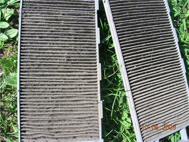 А так выглядит фильтр который эксплуатировался в Москве 1.5 года. Даже на просвет солнцу не видно ничего, ни единого просвета. :-\