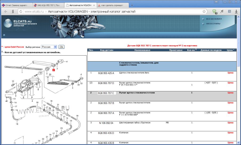 Код поводка VAG 6Q6 955 707 C и колпачка 6Q6 955 435 D, дворник оригинал VAG 1T0 955 427 B (340мм)