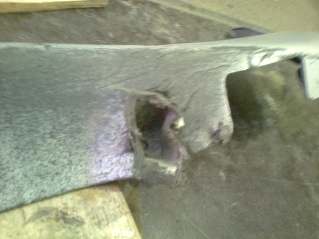Начинаем процесс нагревания пластика и стараемся выправить основные углубления и неровности,температуру на фене задаю 550-600 градусов,но надо видить и чуствовать сам пластик и не прозевать момент его нужного нагрева.Старатся в первую очередь выправить деталь по первоначальной форме и не обращать на другие трещины или сквозные дырочки.После чего получаем ближе к началбному.