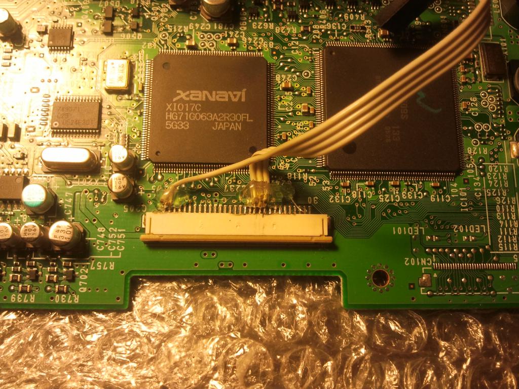 Далее берем основную плату подпаиваемся к контактам разъема шлейфа что шел к монитору: