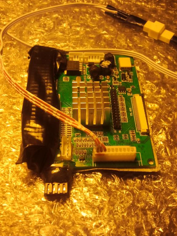 3. Модуль монитора: Вот плата монитора с уже приклееным на термоклей радиатором, разъемы монитора закрыты армированым скотчем для изоляции: