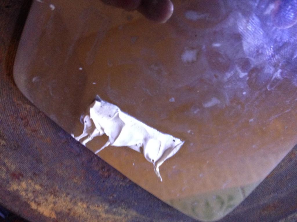 4. Переносим остатки "липучки" с зеркала и намазываем "углы" будущей стрелки.