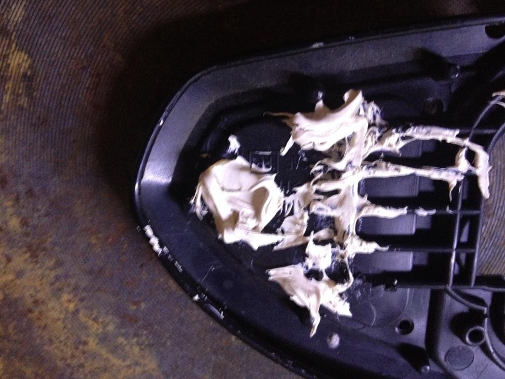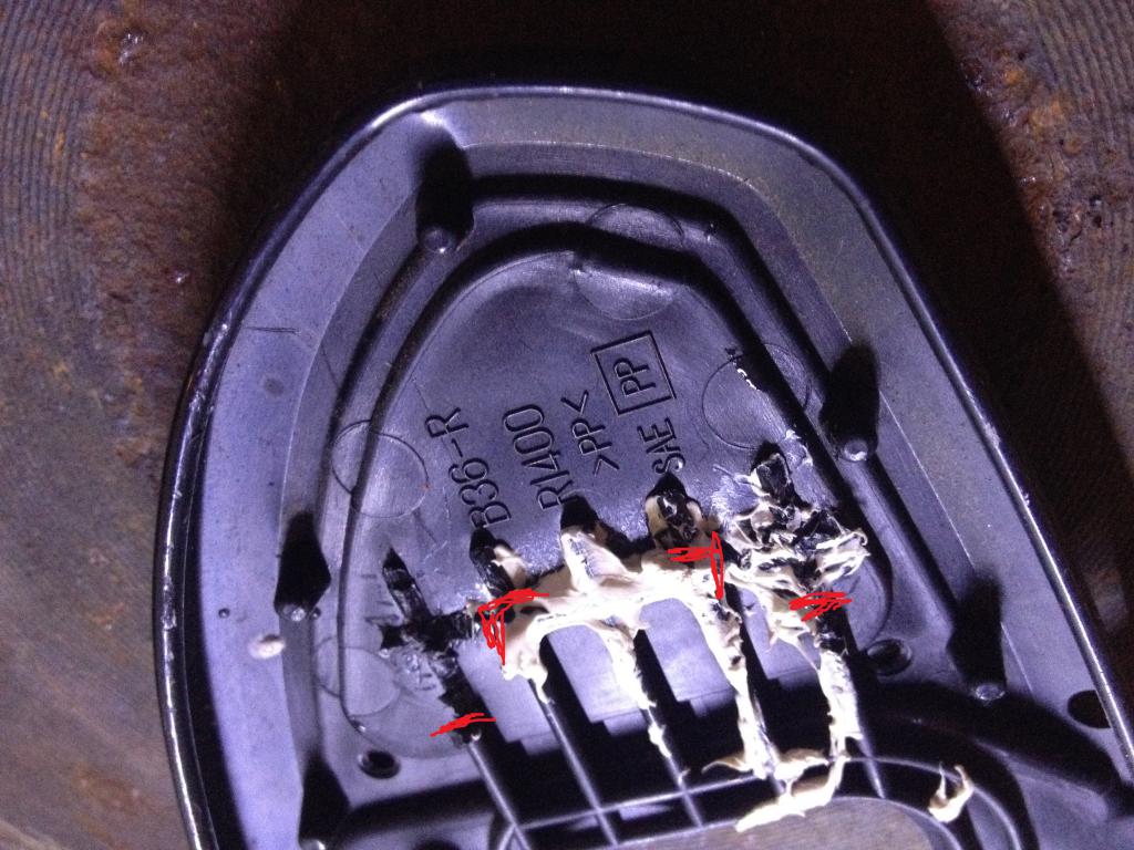 на рестайле эта пластмаска в углу "дырявая (возможно и проще будет). т.к. все манипуляции производились в ходе делания складных зеркал, то моторчик и сами пластмаски я ставил от дореста (а точнее от японки, но они идентичны). + на японских зеркалах их дополнительно зачем-то примазывают несохнущей какой к пластмаскам.
