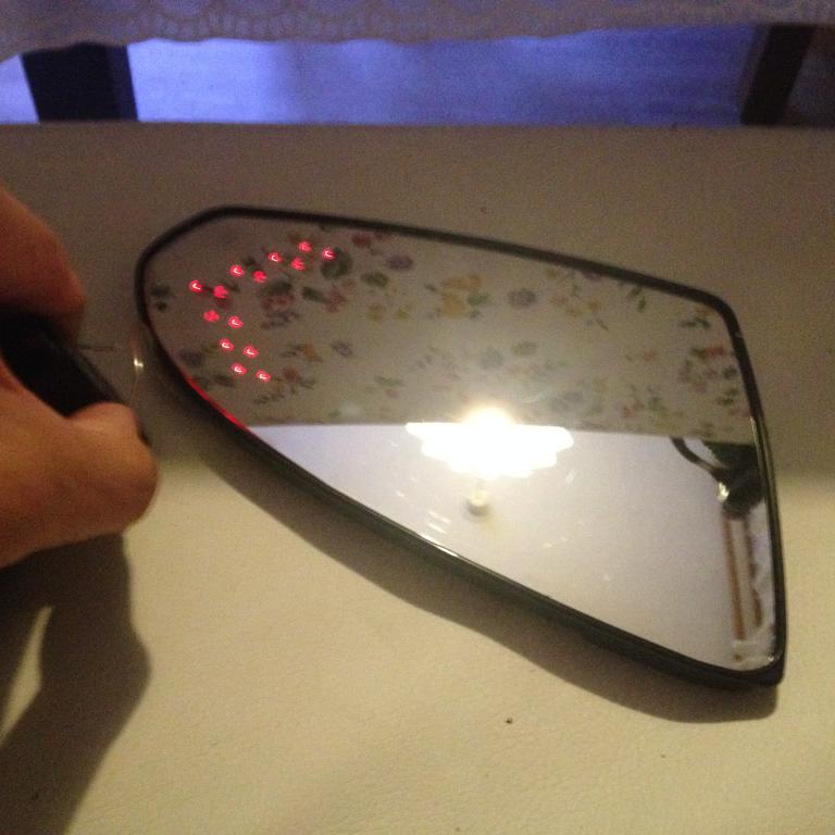 А я в зеркалах сделал вот так вот, правда после подключения сгорел полевой транзистор. пришлось заказывать его и ждать две недели, а затем идти в ремонт телефонов и перепаевать блок управления комфорта(100р работа), зато потом как снимаешь авто с охраны загораеться параллейно свет с салонным, а так же при открытие дверей.