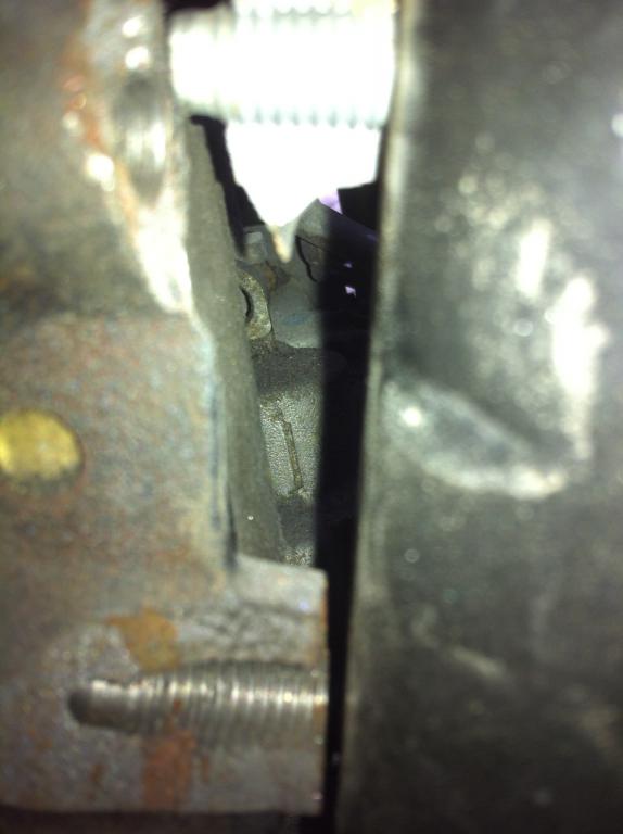 Привет..Как сделан..снимок..ТО, верхний можно досверлить..А вот , нижний..попробовать засверлить..вместо болта поставить шпильку..и приварить..Это мое мнение..