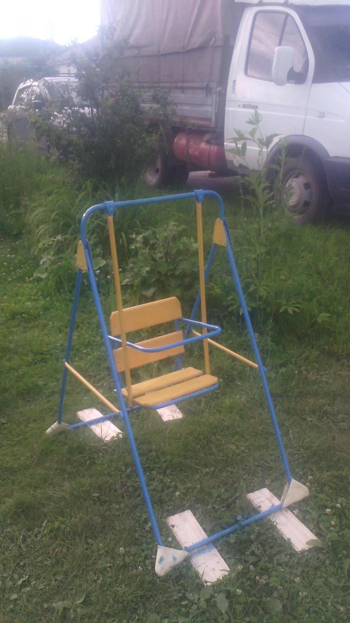 Механизмы все в норме, а вот внешний вид уже потрёпанный, краска облезла и сидушка со спинкой были сделаны из фанеры, приделанной скотчем и веревками какими-тоВсё это дело тряпочкой накрывали, чтоб покататься.