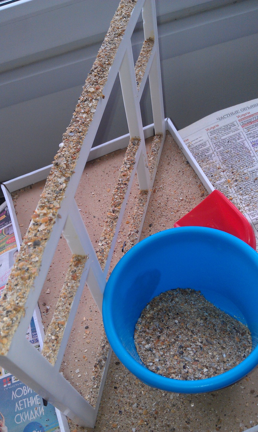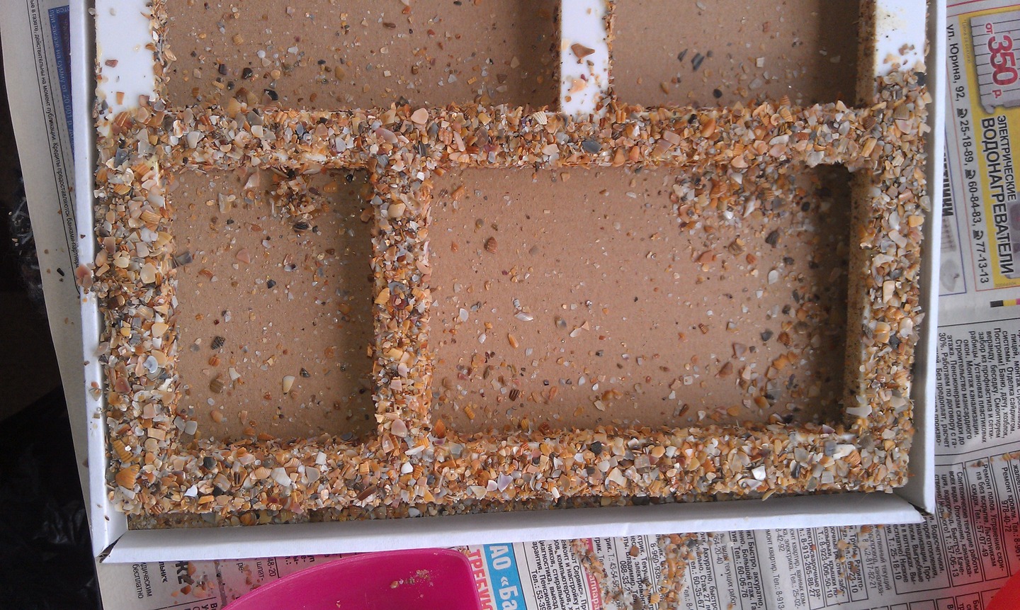 потом просеял песок собраный на Черном море и на клей обсыпал обломками ракушек рамку,