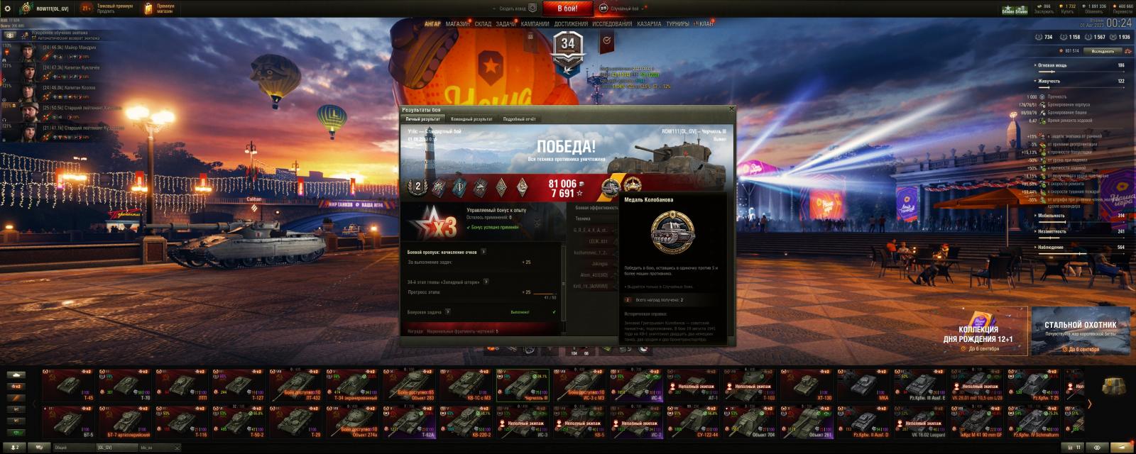 ПОБЕДА!Черчилль IIIУтёсОпыт за бой: 3 167 Опыт экипажу: 4 750Кредиты за бой: 81 006Доход за бой: 20 594 Достижения: «Заговорённый», «Костолом», «Дуэлянт», «Основной калибр», Медаль Колобанова, «Боец», «Огонь на поражение», Знак классности «2 степень»
