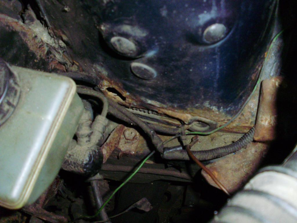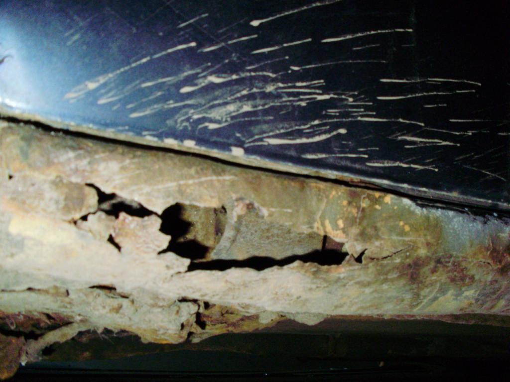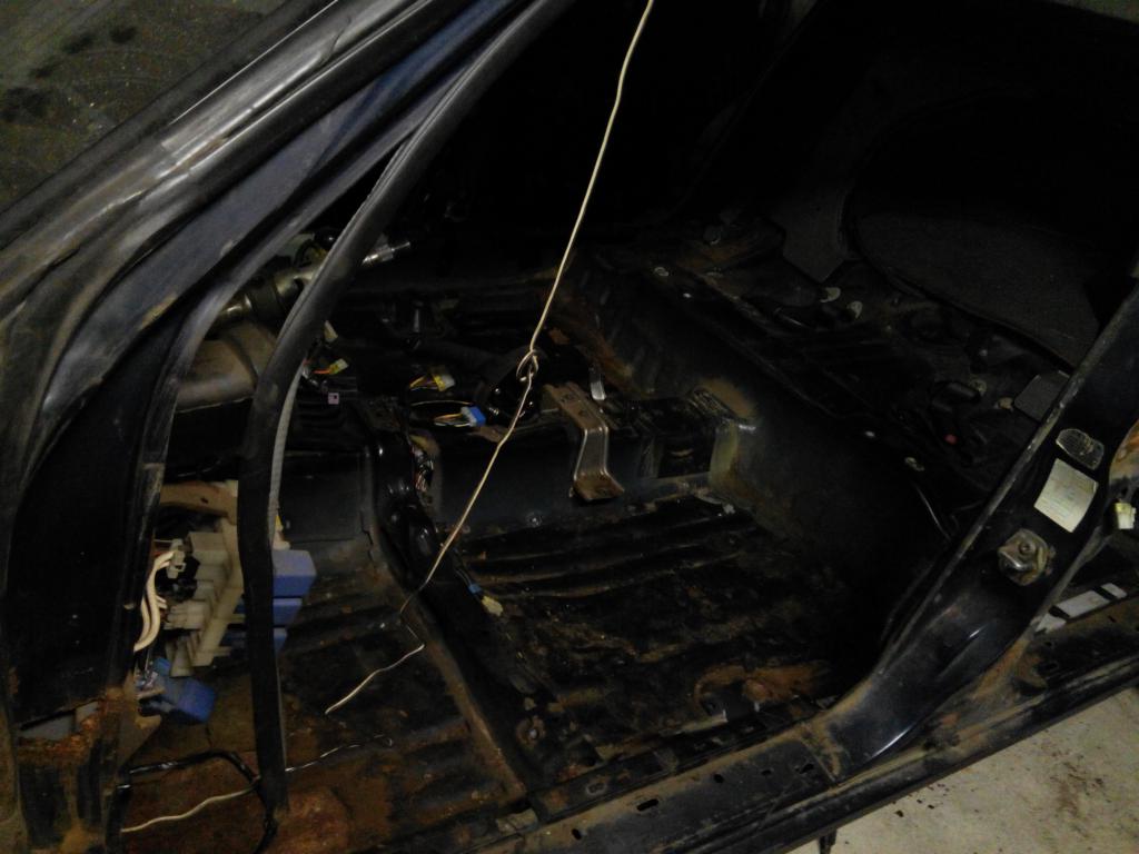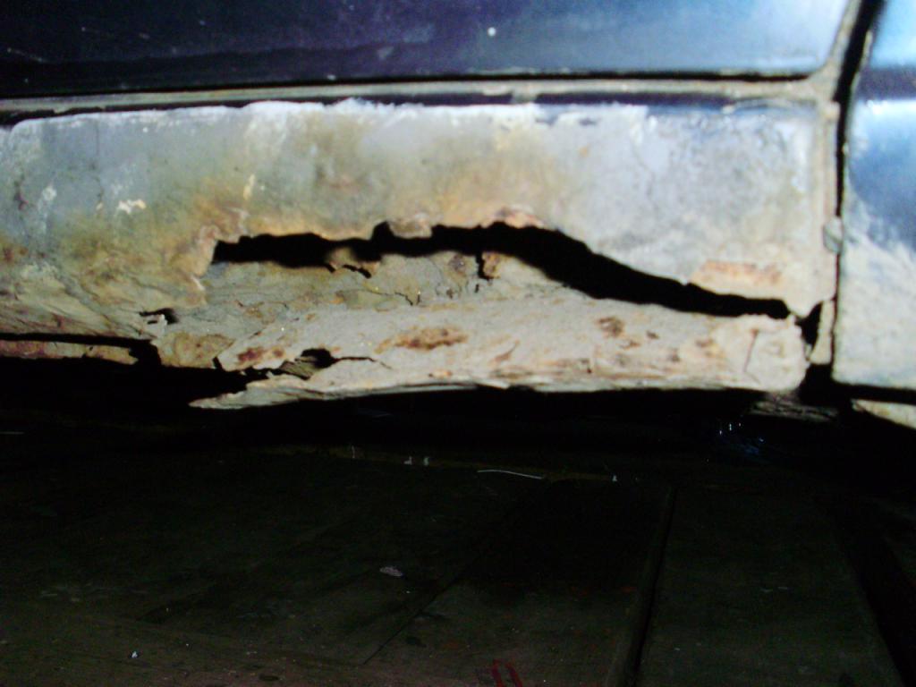 Сгнили поддомкратники, силовой элемент пола, район крепления брызговика, почти дошло до крепления нижнего рычага.