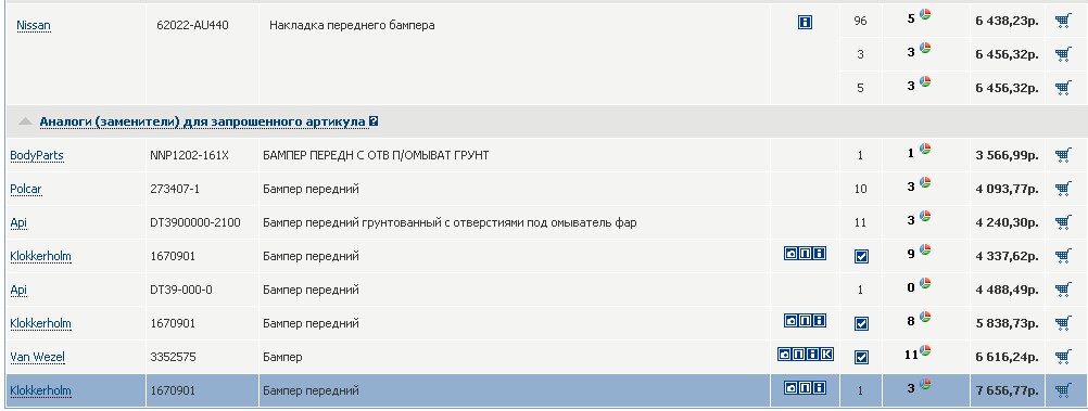 Толи я ищу не на тех разборах, толи искать не умею, но мне выпадают ценники как на оригинал новый , либо бампера уже порванные....