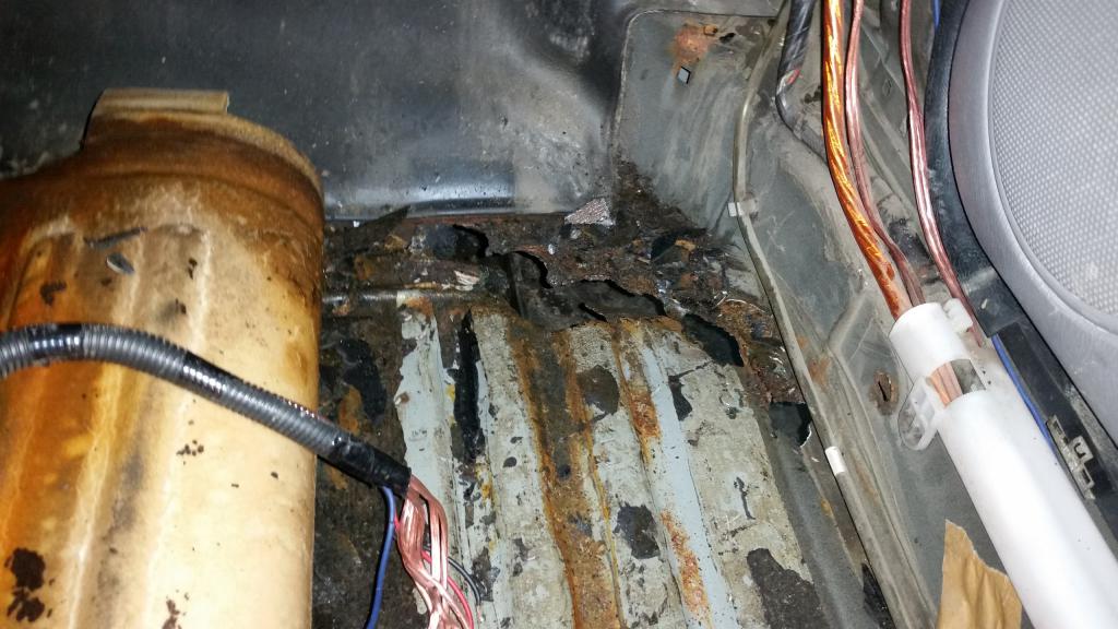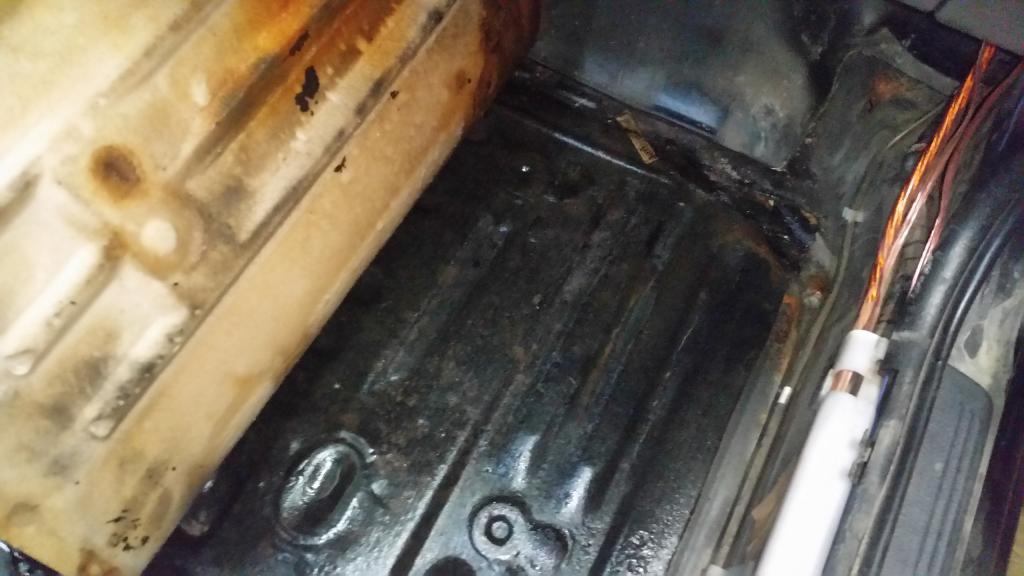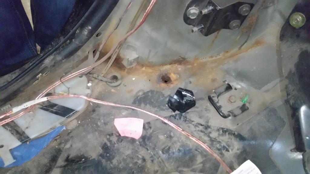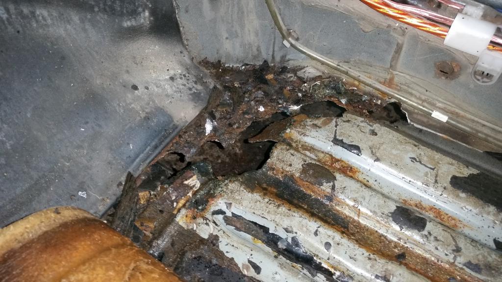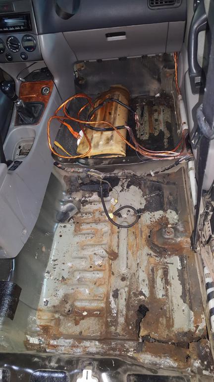 Так выглядело сзади в ногах пассажира когда сняли ковры, вроде ничего криминального, поверхностная ржа.