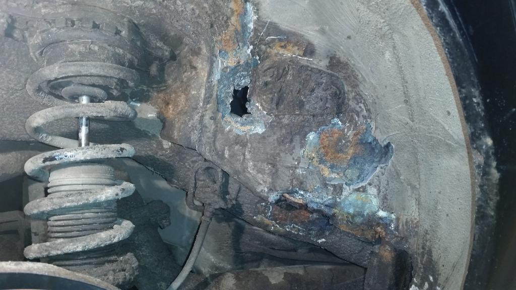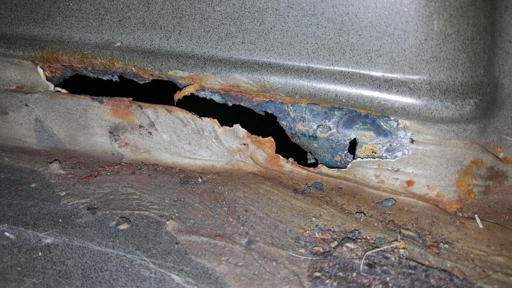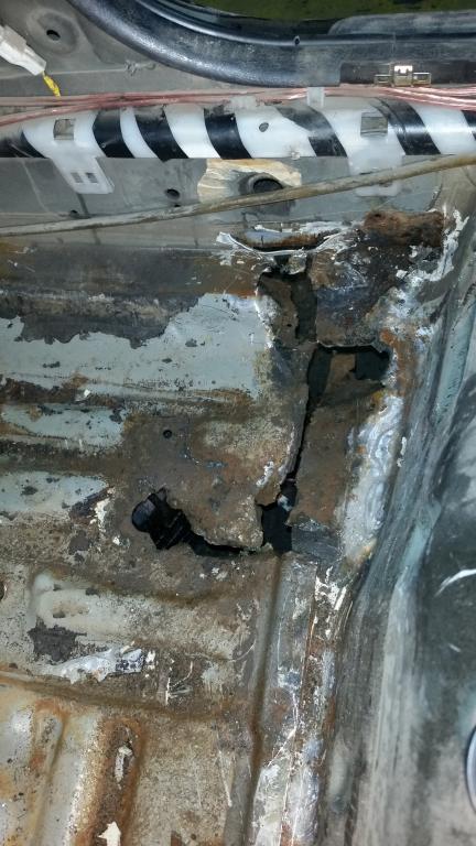 Ковырнув отверткой около болтов крепления сиденья насквозь пробивается металл, хотя он там был негнилой, а просто с черным налетом.