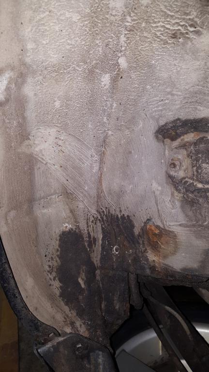 К примеру увидел маленькое черное пятнышко, антикор был целый, ни намека на ржавчину под ним, но стоило всего лишь чуть чуть ковырнуть и вот что вышло, весь металл именно под антикором серого цвета. А в местах коррозии черный.
