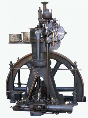 28 января 1897 года Рудольф Дизель создал первый работоспособный двигатель принципиально новой конструкции - с воспламенением от сжатия. Идеальный рабочий цикл Дизель представлял себе следующим образом: 1) получение наивысшей температуры сгорания не посредством горения, а путем механического сжатия чистого воздуха; 2) постепенное введение тонко распыленного топлива в этот сильно сжатый и потому сильно нагретый воздух; 3) правильный выбор соотношения между количеством воздуха и теплопроизводительностью топлива при установленной заранее температуре сжатия. Опыты с применением в качестве топлива угольной пыли и газа оказались неудачными, и только третий образец, работающий на нефти, оказался пригодным для практического применения. Его высота составляла 3 м, он развивал 172 об/мин, единственный цилиндр имел диаметр 250 мм, ход поршня составлял 400 мм, а мощность варьировалась от 18 до 20 л. с. Расход топлива составлял 258 г нефти на 1 л. с. в час, термический КПД достиг 26,2%. Это намного превосходило существующие двигатели Отто и судовые паровые турбины, что вызвало немедленный интерес промышленности.