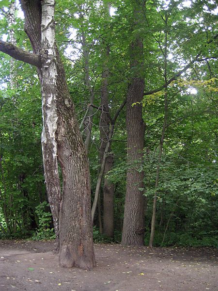 Дерево любви. Дуб сохранился, а вот береза, почему-то, сверху отпилена. Жаль…
