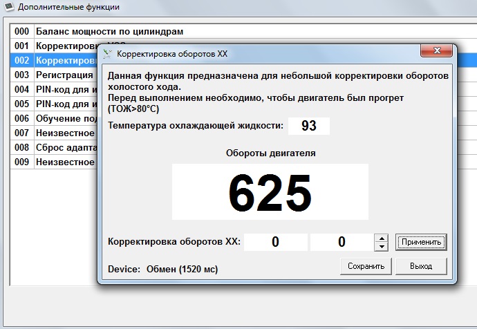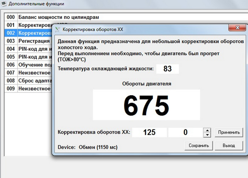 Включил ВСЮ нагрузку - все фары, кондиционер, музыку, доп. устройства в прикуриватель, нажал стоп и выжал Драйв и по шажку стал поднимать обороты, оптимально тряска уменьшилась вот на таких, выше поднимать не стал, хотя +125 оборотов - это практически те же +150, что и были. Разве что УОЗ = 0