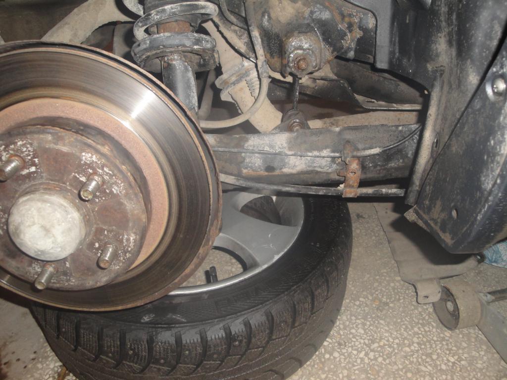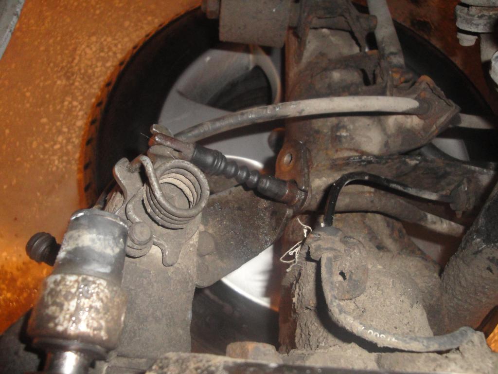 Ручник перестал работать на правом колесе. Проблема была в том, что тросик забился грязью и ржавчиной и вообще перестал ходить ни в одну ни в другую сторону.