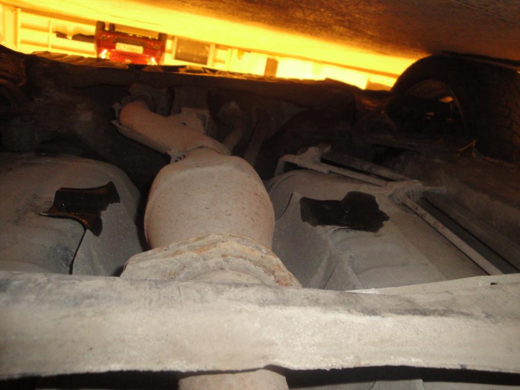 откручиваем защиту над глушителем и сдвигаем ее максимально вперед